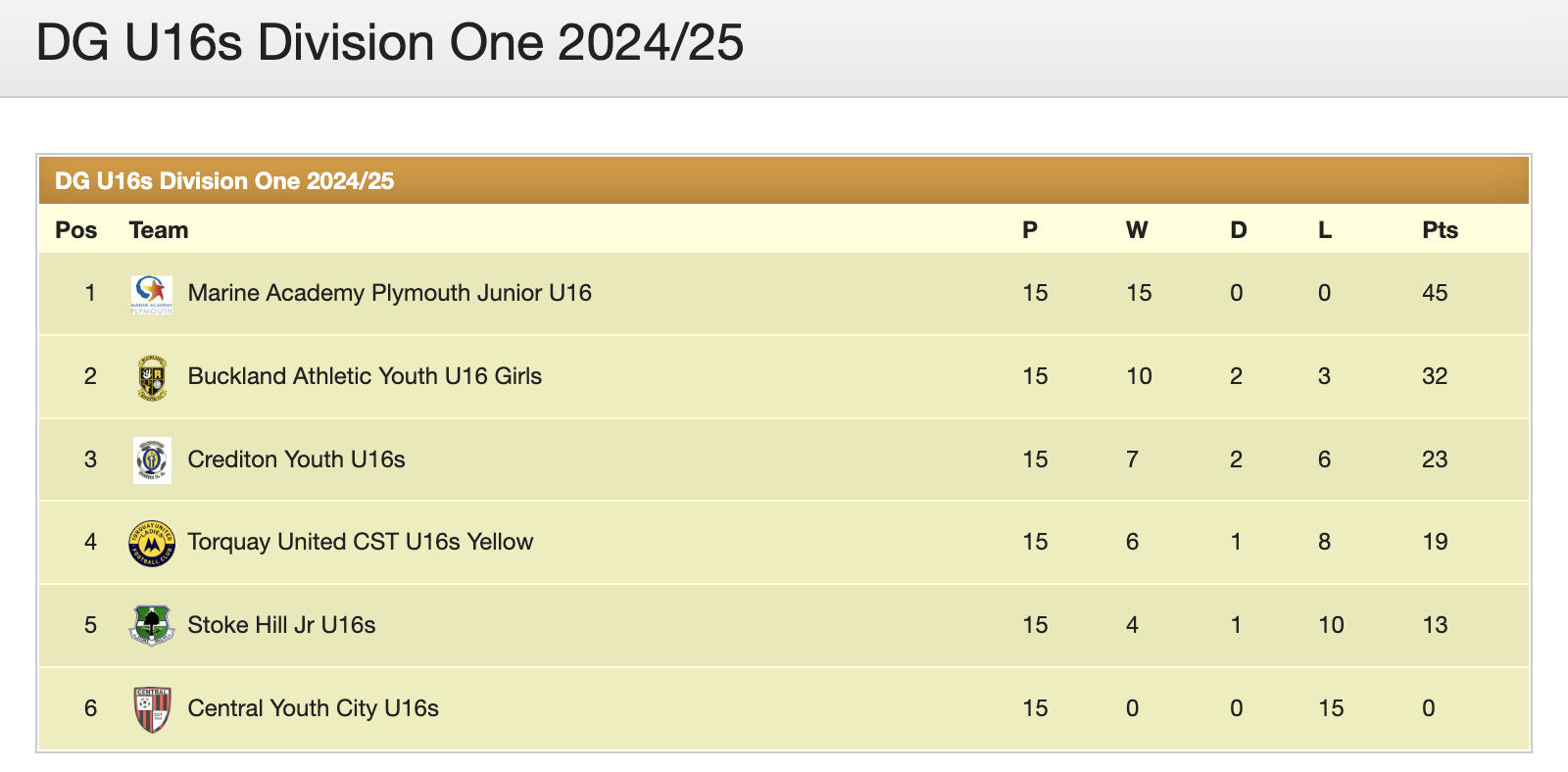 Final League Tables: FA Women’s National League South West – DWFL Premier Division – Pioneer Youth League Under-14 Division Two – Devon Girls Under-12